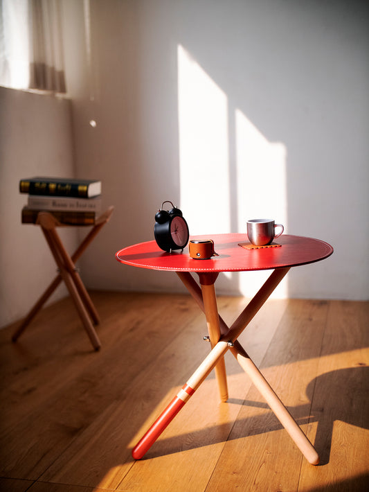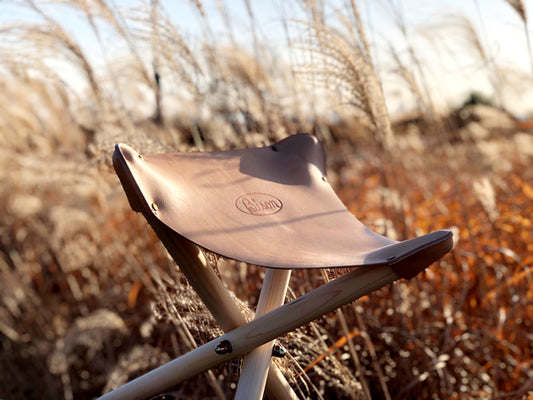 Bison Tripod Stool with Italian Vegetable Leather and Beech Wood